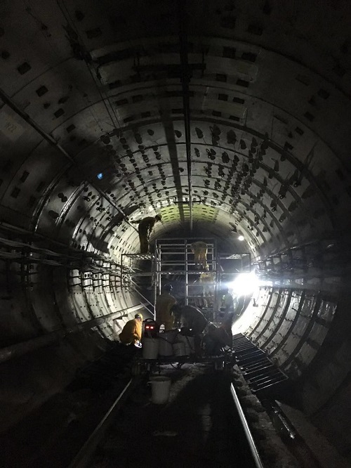 本次軌道巡檢跟崗區(qū)間為九號線九亭站至七寶站,折返里程總長七公里,施工點為凌晨一點至三點四十五。凌晨十二點半,學習小組在巡檢組長帶領下前往九亭站車控室進行施工請點登記。正確穿戴完畢勞防用品后,一點鐘準時進入軌行區(qū),軌道巡檢作業(yè)主要是對沿線的鐵軌、道床、扣件等等設施進行檢查。在巡查過程中也遇到了軌檢車作業(yè)、道岔聯(lián)合測試、隧道不均勻沉降加固等等施工作業(yè)。